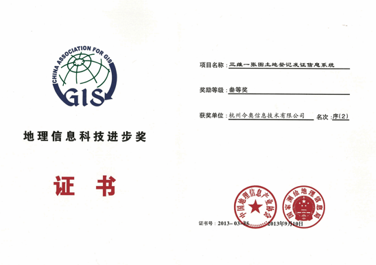 • 地信三維一張圖土地登記發(fā)證三等獎-公司
